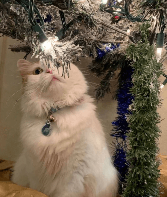 Durante toda la temporada navideña, Ginger pasa la mayor parte del tiempo cerca del árbol. Se sienta tranquilamente a observar las luces de colores, disfrutando del brillo y la calma que le transmite. Para ella, cada día es una oportunidad de aprovechar esos momentos antes de que el árbol sea guardado hasta el próximo año.