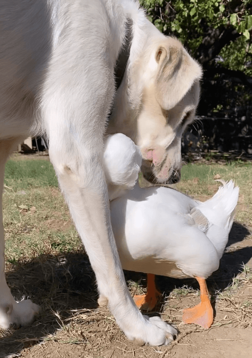 Aunque los otros patos seguían dejándolo atrás, los perros del vecindario lo adoptaron como uno de los suyos. Le compartían su comida y hasta se estiraban para que pudiera acurrucarse sobre ellos. Al parecer, no les molestaba nada este tierno arreglo… ¡al contrario! Les encantaba tener a Sunny cerca.